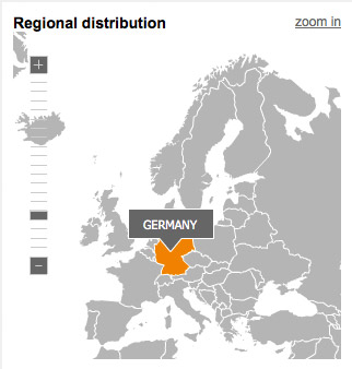IT&O-Versand generated based on the IP addresses of subscribers an overview of the 'local distribution'. If openings were counted in one country, this will be color coded. By clicking on the country a magnified view appears and cities become visible as points. The larger the dots, the more Openings were counted in this city. Move the cursor over an item, you see the Openings to the location. The data relate to the unique Openings (unique).